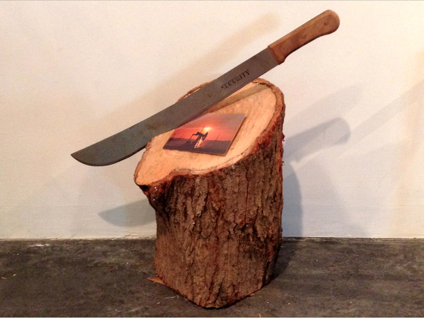 En el caso del conjunto de obras Muerte en la tierra tropical (Machete, tronco y postal de un sinfín extractor de petróleo), Muerte en la tierra tropical azul (Machete, pintura de óleo de paisaje, pedestal, busto de indio, calavera y monedas) y Muerte en la tierra tropical roja (Machete, pintura de óleo de paisaje y tronco) nos da la sensación de un sitio violentado, muestra unos cuadros atravesados con un machete que se convierten en el vestigio de lo que queda más allá de lo idealizado. De esta manera, la percepción del objeto nos lleva a apreciar la conformación del mismo pero, las connotaciones en las manipulaciones, generan no una lectura sino una experiencia.