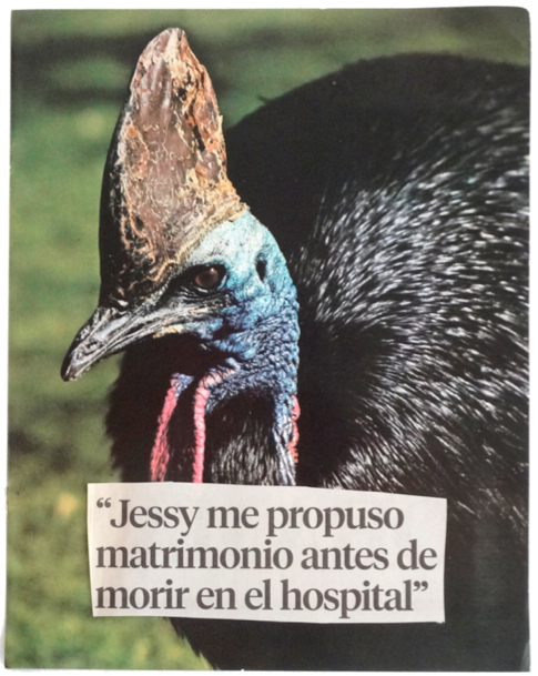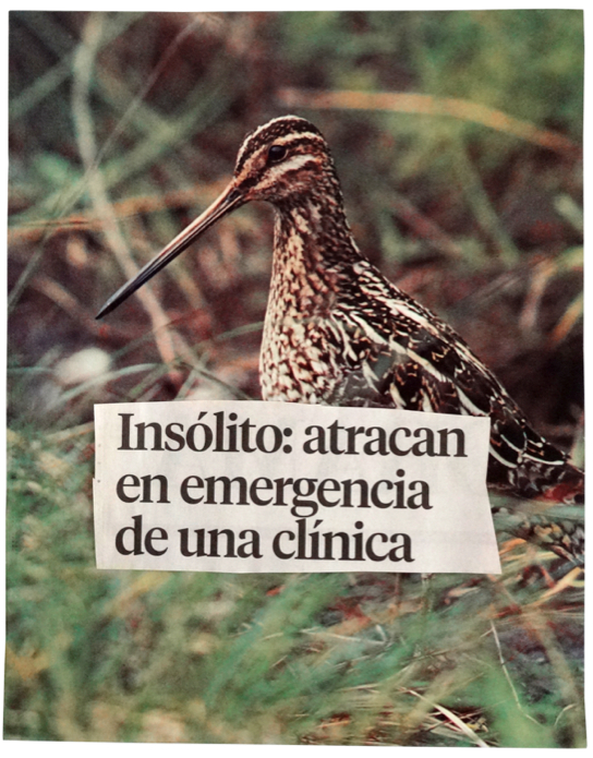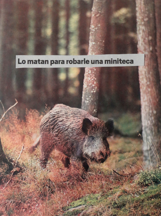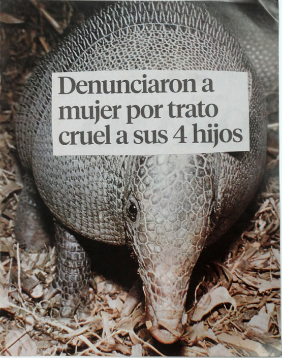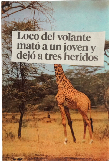 Por el contrario, Sucesos del día a día (imágenes de animales acompañados de titulares de prensa), hace referencia a situaciones de violencia y de muerte de individuos particulares. En este caso, se relaciona a lo melancólico pero también a la amargura que deja la pérdida o la ausencia de un ser humano específico. Aquello que Humboldt recibió en su retina y su alma se hace trágica; la regocijada narración (fiel registro de lo que apareció ante el) es sustituido por titulares de prensa que denotan hechos noticiosos cargados de violencia[4].