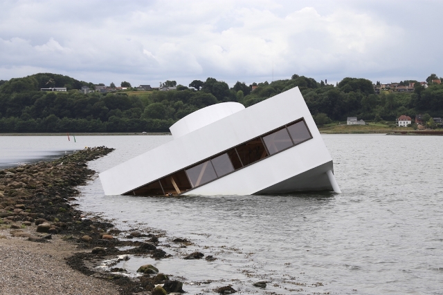 Superada la espontaneidad del ferry margariteño, la imagen metafórica de una modernidad en tragedia encuentra su interpretación –literalmente- construida por el artista danés Asmund Havsteen-Mikkelsen en la pieza Flooded Modernity (Modernidad inundada, 2018), en la que un fragmento de maqueta en escala real de la Villa Savoye de Le Corbusier es sumergida en un fiordo europeo. En esta, la “máquina para vivir” del padre del Movimiento Moderno se hunde con sus logros y derrotas como crítica a la situación actual del ideal de pensamiento occidental, mientras expone la naturaleza del hecho arquitectónico como artefacto de comunicación con la capacidad de narrar a través de su materialidad y espacio los episodios históricos en los que se ubica.