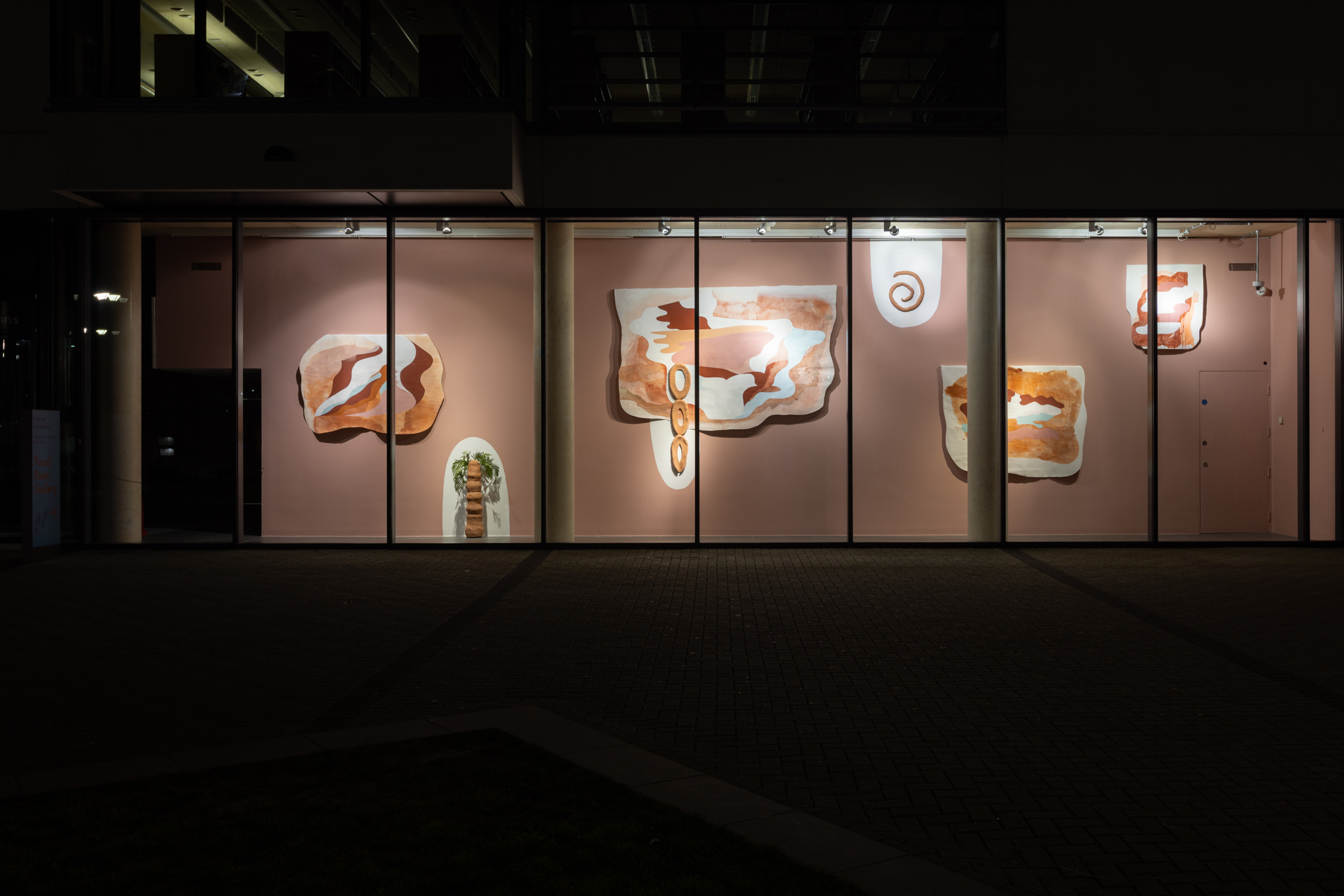 Focal Point explica que Faunal Succession está compuesta por tres ambientes que fusionan instalación, escultura, pintura, sonido y participación comunitaria. Cada espacio hace referencia a los estratos geológicos de la costa británica y sus organismos vivos, combinando interpretaciones científicas y poéticas del paisaje. El título de la exposición remite al principio de sucesión faunística: la observación de patrones cronológicos en los fósiles que permite a los geólogos datar con precisión las capas de roca sedimentaria. Para la artista, esta manifestación física del «tiempo profundo» se convierte en un marco para repensar las crisis humanas y ecológicas actuales, revelando que las fronteras y las identidades nacionales son conceptos construidos y recientes.